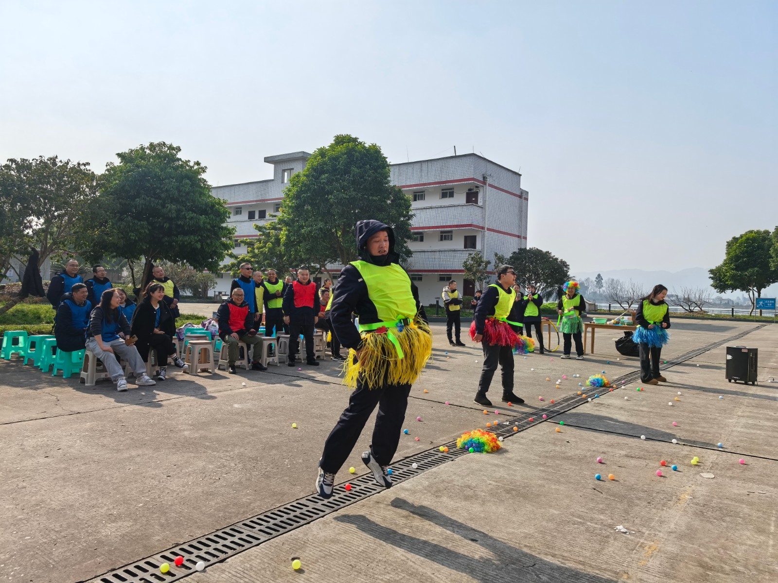 本次游園會設置了多個充滿趣味與挑戰的運動項目。在“齊心協力運球”項目中,參與者用前胸后背夾住氣球向前運送到終點,選手們緊密配合,步伐一致,在保證氣球不落地的前提下快速前進。“公雞下蛋”項目展現了職工們的活力與敏捷,“運送面粉”項目,無疑是一個考驗團隊合作與策略規劃的精彩項目,面粉被風吹散或是隊友間傳遞時忍俊不禁的畫面,更是將活動現場氣氛推向了高潮,歡呼聲、助威聲、惋惜聲此起彼伏。