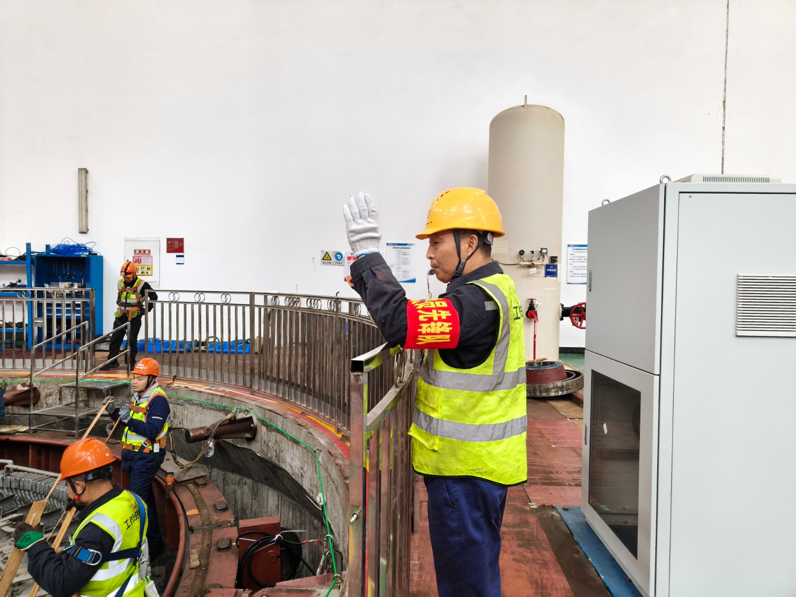 9時(shí)20分,轉(zhuǎn)子吊裝工作正式啟動(dòng)。“黨員先鋒隊(duì)”“黨員攻堅(jiān)隊(duì)”“青年服務(wù)隊(duì)”三支攻堅(jiān)引領(lǐng)團(tuán)隊(duì)按照各自分工,迅速投入到緊張工作中。他們身著整齊的工作服,佩戴著鮮艷的黨徽,有的負(fù)責(zé)設(shè)備檢查,確保吊裝機(jī)械處于最佳狀態(tài);有的負(fù)責(zé)現(xiàn)場協(xié)調(diào),保障各環(huán)節(jié)無縫對(duì)接;有的負(fù)責(zé)安全監(jiān)督,時(shí)刻警惕任何潛在的安全隱患;還有的負(fù)責(zé)現(xiàn)場物資供應(yīng)、醫(yī)療救護(hù)等工作。12時(shí)35分,隨著一聲哨響,#3機(jī)轉(zhuǎn)子精準(zhǔn)落入檢修間指定位置。這一關(guān)鍵節(jié)點(diǎn)的圓滿完成,不僅是對(duì)前期工作的肯定,更為后續(xù)機(jī)組檢修工作注入了強(qiáng)大的信心和動(dòng)力。下一步,高奉山黨支部將繼續(xù)探索黨建工作與企業(yè)中心工作深度融合的新路徑、新方法,不斷推動(dòng)“崗位紅”特色能源小站建設(shè),奮力沖刺全年安全生產(chǎn)目標(biāo)任務(wù)。