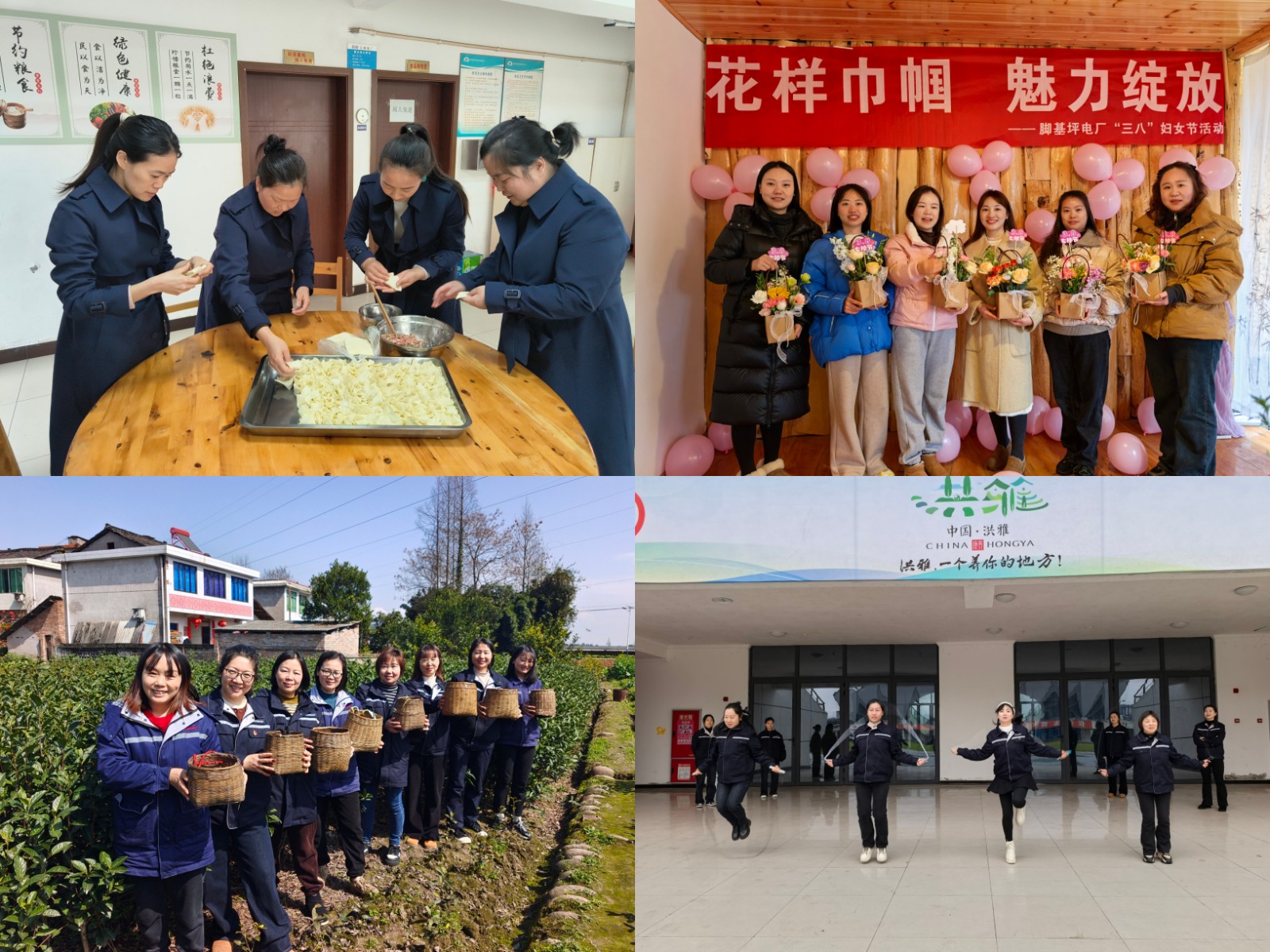 川投電力工會組織開展“巾幗心向黨,奮進新征程”系列慶祝活動,組織女職工開展集體趣味活動,結合實際案例,宣傳《婦女權益保障法》《女職工勞動保護特別規定》等法律法規,舉辦“玫瑰書香”主題閱讀分享活動等;槽漁灘公司工會組織了手鼓表演、工間操、《婦女權益保障法》知識答題活動;天彭電力公司工會開展了漢服沉浸體驗、漢服主題攝影、傳統文化講座與交流、讀書分享會;高奉山工會小組開展戶外踏青,體驗農耕文化;百花灘工會小組開展健康徒步走、跳繩、搖呼拉圈等趣味運動會;腳基坪工會小組開展了插花藝術沙龍、座談分享會;玉田工會小組開展了徒步登山、觀看女性健康宣傳片和“共建家園情”包餃子活動。