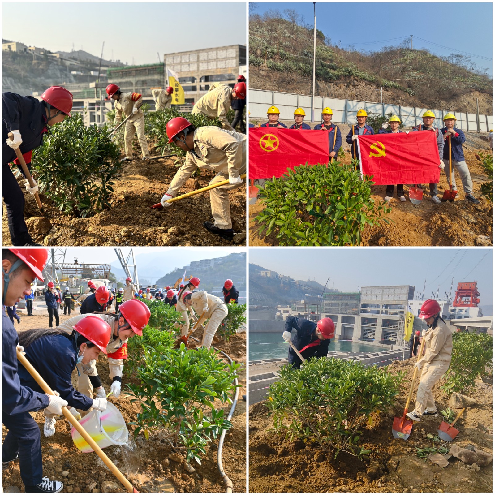 根據攀枝花氣候特點,本次植樹活動主要種植名為“非洲茉莉球”的常綠灌木,它具有耐曬、耐旱、耐炎熱等特點,觀賞和藥用價值都很高,常常被看作是尊重和友誼的象征。參與人員熱情高漲,兩人一組、三人一隊,紛紛拿起鐵鍬、水桶等工具投入到植樹行動中,大家分工明確,配合默契,有的揮鍬鏟土,有的扶苗填坑,還有的提水澆灌,現場一片熱火朝天的忙碌景象,在大家的共同努力下,35棵樹苗在銀江水電站“安家落戶”。