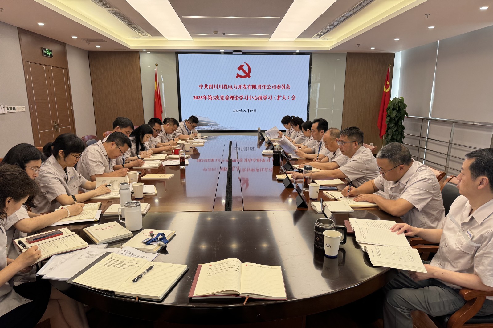 5月15日,川投電力黨委書記、董事長楊濤主持召開黨委理論學習中心組2025年第3次學習(擴大)會議,深入學習貫徹中央八項規定精神及省委警示教育大會精神,結合典型案例開展警示教育,強化黨員干部紀律意識,為公司高質量發展提供堅實保障。公司領導班子成員、中層管理人員參會。