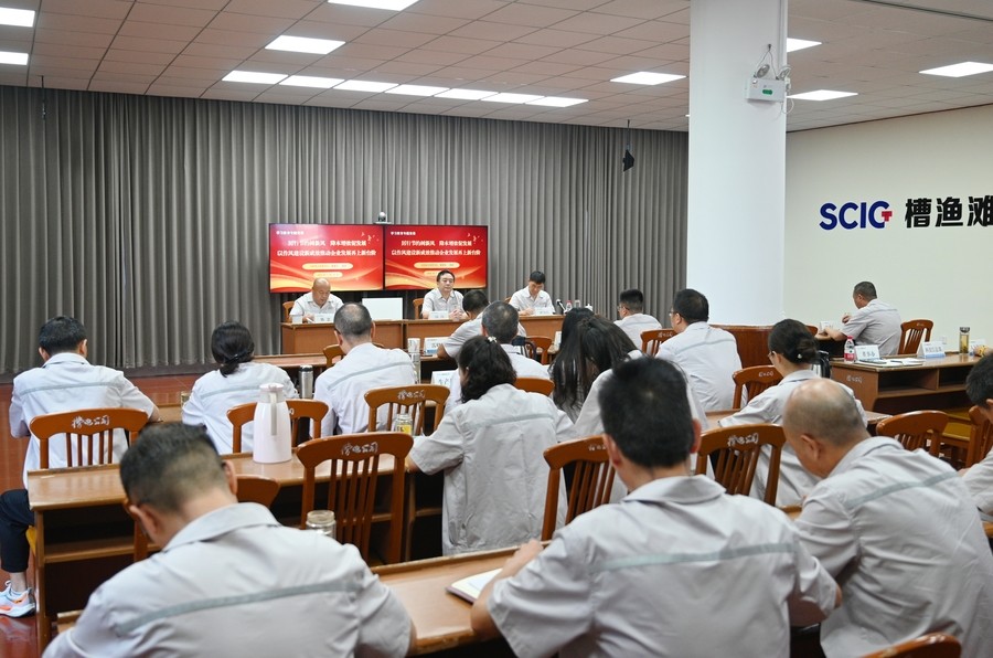 楊濤與大家共同回顧了槽漁灘公司創業歷程,從1992年荒灘起步到建成發電,一代代槽電人始終傳承“艱苦創業、勤儉節約”的紅色基因,用實際行動詮釋了“勒緊褲腰帶過日子”的奮斗精神。他指出,槽電公司正處于生產經營的關鍵攻堅期、轉型發展的重要窗口期,更需要大力弘揚黨的優良傳統,將八項規定精神與生產經營深度融合,讓“降本增效”成為全員行動自覺,切實把政治優勢轉化為破解發展難題的強大合力。