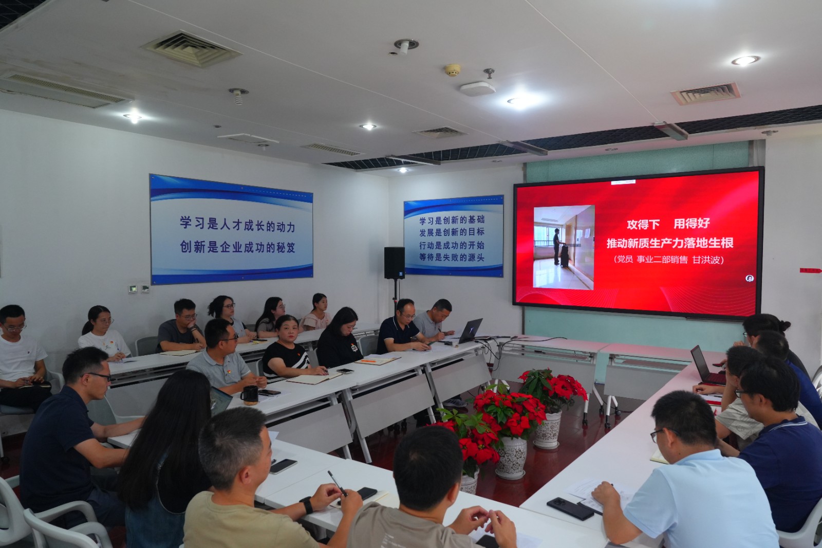 在研討分享環(huán)節(jié),各支部派出代表結(jié)合自身崗位特點(diǎn)分享交流實(shí)踐經(jīng)驗(yàn)。第一黨支部研發(fā)人員以技術(shù)文檔寫作為切入點(diǎn),為大家提高技術(shù)寫作水平提供了寶貴經(jīng)驗(yàn)。第二黨支部結(jié)合業(yè)務(wù)工作中分享費(fèi)用報(bào)銷中容易出現(xiàn)的相關(guān)問題,并強(qiáng)調(diào)要將合規(guī)守法貫穿工作始終,杜絕僥幸心理,嚴(yán)守黨員本色。第三黨支部分享銷售人員甘洪波的事跡,鼓勵(lì)大家以黨的創(chuàng)新理論為指引,在工作中沖鋒在前,不斷推動(dòng)新質(zhì)生產(chǎn)力落地生根,在工作中彰顯黨員先鋒本色。