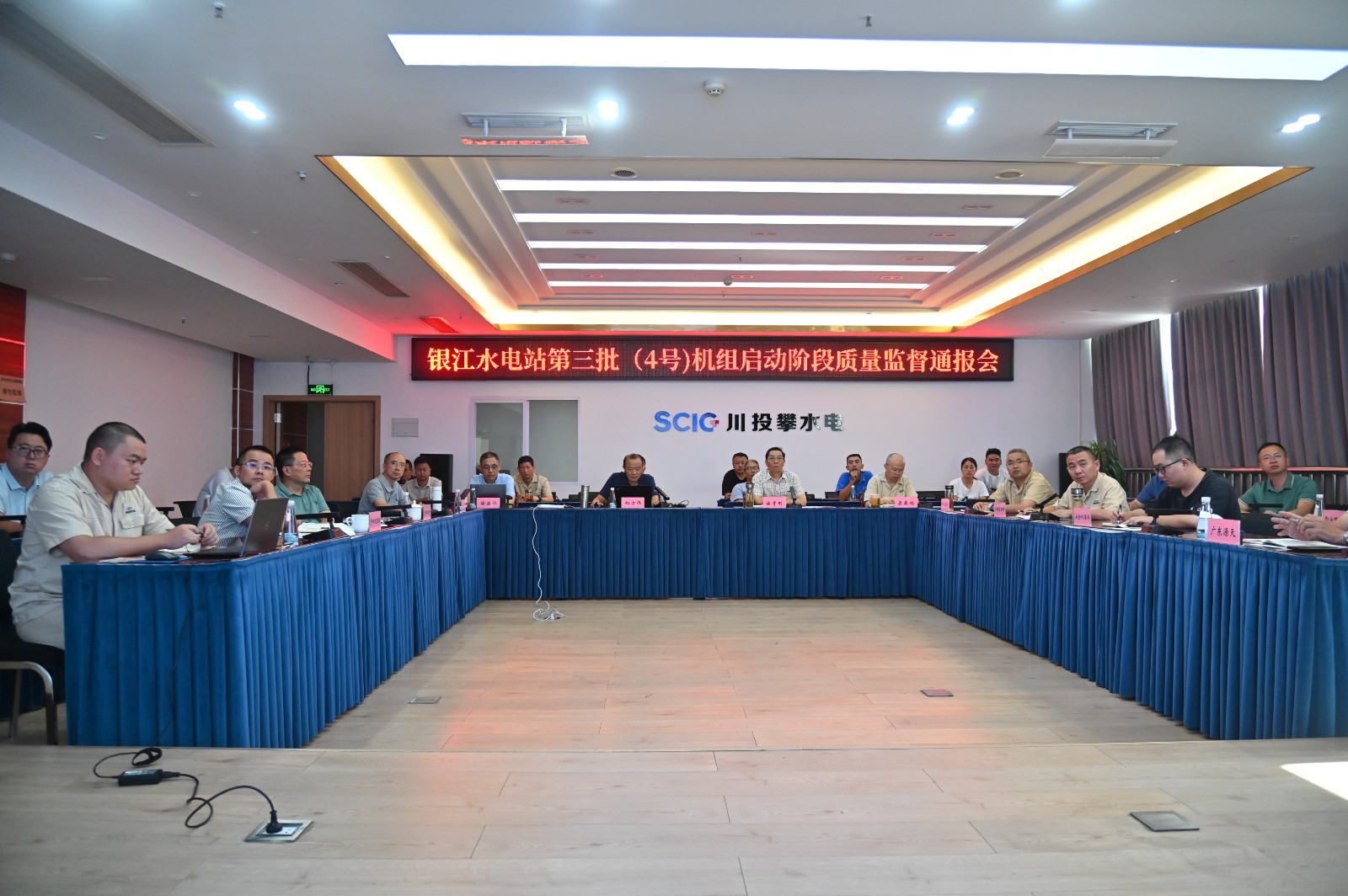 7月26日~29日,可再生能源發電工程質量監督站質量監督專家組向方偉一行3人赴銀江水電站開展了第三批(4號)機組啟動階段質量監督檢查,川投能源副總經理、攀水電公司黨總支書記、董事長徐孝剛,黨總支副書記、總經理吳巍嶼及相關部門、相關參建單位全程陪同檢查。