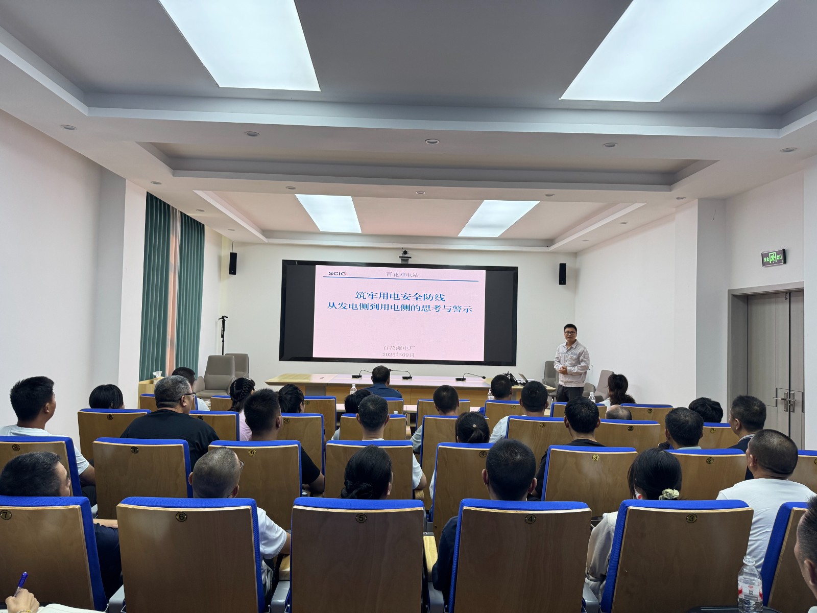 近日,應洪雅縣應急管理局誠摯邀請,百花灘電廠發電部經理吉超,在洪雅縣 “2025年第三季度工業企業安全穩定工作會議”上,為參會的各工貿行業人員開展了一場內容詳實、實用性強的用電安全知識培訓,為全縣工業企業筑牢用電安全屏障注入專業力量。