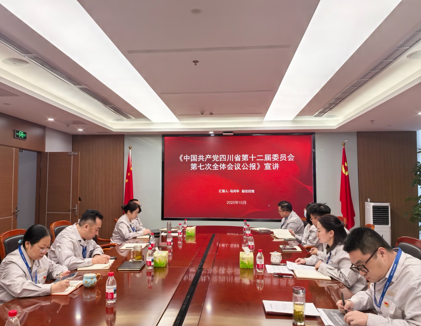 接著,川投電力副總經理馬月華宣講了省委第十二屆七次全會精神,會議強調,全體黨員干部要立足崗位、找準落實全會精神的結合點,為奮力譜寫中國式現代化四川新篇章作出新的更大貢獻;要結合自身思想和工作實際,深刻領會全會精神實質、在本職崗位上踐行初心使命、發揮先鋒模范作用;要將全會精神轉化為強大的精神動力和務實的工作舉措,勇于擔當,敢于作為,爭當崗位先鋒,在服務大局、推動發展、服務群眾中展現新時代共產黨員的風采。