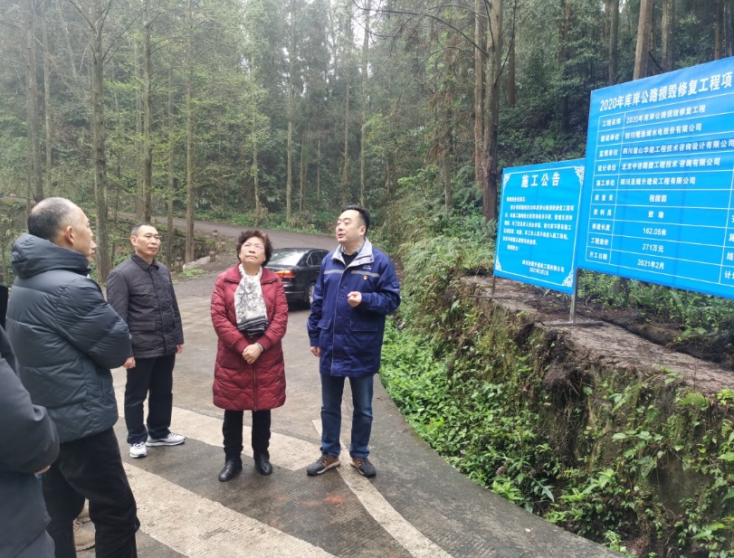 3月10日上午,洪雅縣安全巡視督導組到川投能源槽漁灘庫區檢查巡視受8.18特大洪水造成損毀庫岸公路的修復工程。槽漁灘公司黨委書記、董事長楊濤陪同檢查。