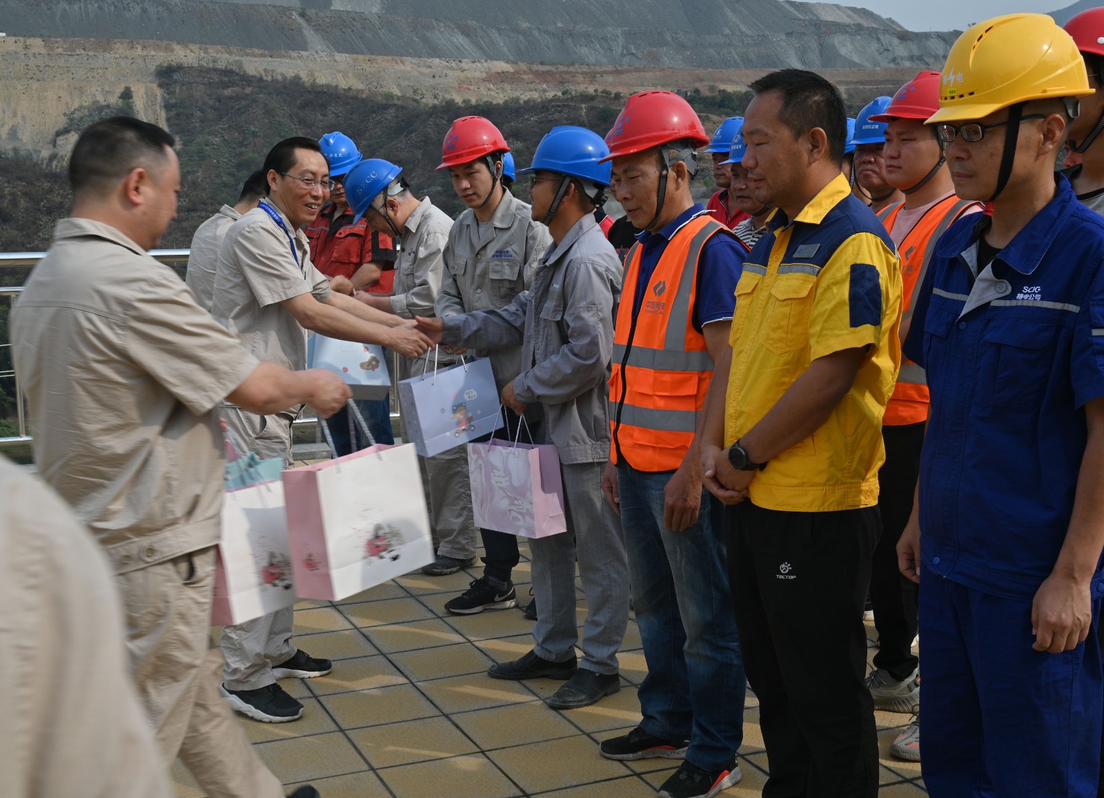 火紅五月,鳳凰花開(kāi),正值攀枝花最炎熱的夏季。“五一”國(guó)際勞動(dòng)節(jié)當(dāng)天,按照川投能源黨委“五個(gè)先鋒”及公司黨總支陽(yáng)光銀江大黨建之“十道陽(yáng)光”行動(dòng)計(jì)劃安排部署,本著“服務(wù)一線職工、助力工程建設(shè)”的宗旨,川投能源攀水電公司工會(huì)組織了送黨史書籍暨五一慰問(wèn)活動(dòng)。川投能源副總經(jīng)理、公司黨總支書記、董事長(zhǎng)徐孝剛帶領(lǐng)公司黨員先鋒隊(duì)及志愿者服務(wù)隊(duì)共20余人,慰問(wèn)堅(jiān)守在銀江水電站工程建設(shè)一線、戰(zhàn)斗在高溫酷暑之中的勞動(dòng)者們,公司黨總支委員、董事會(huì)秘書、工會(huì)主席鄧勇主持活動(dòng)。