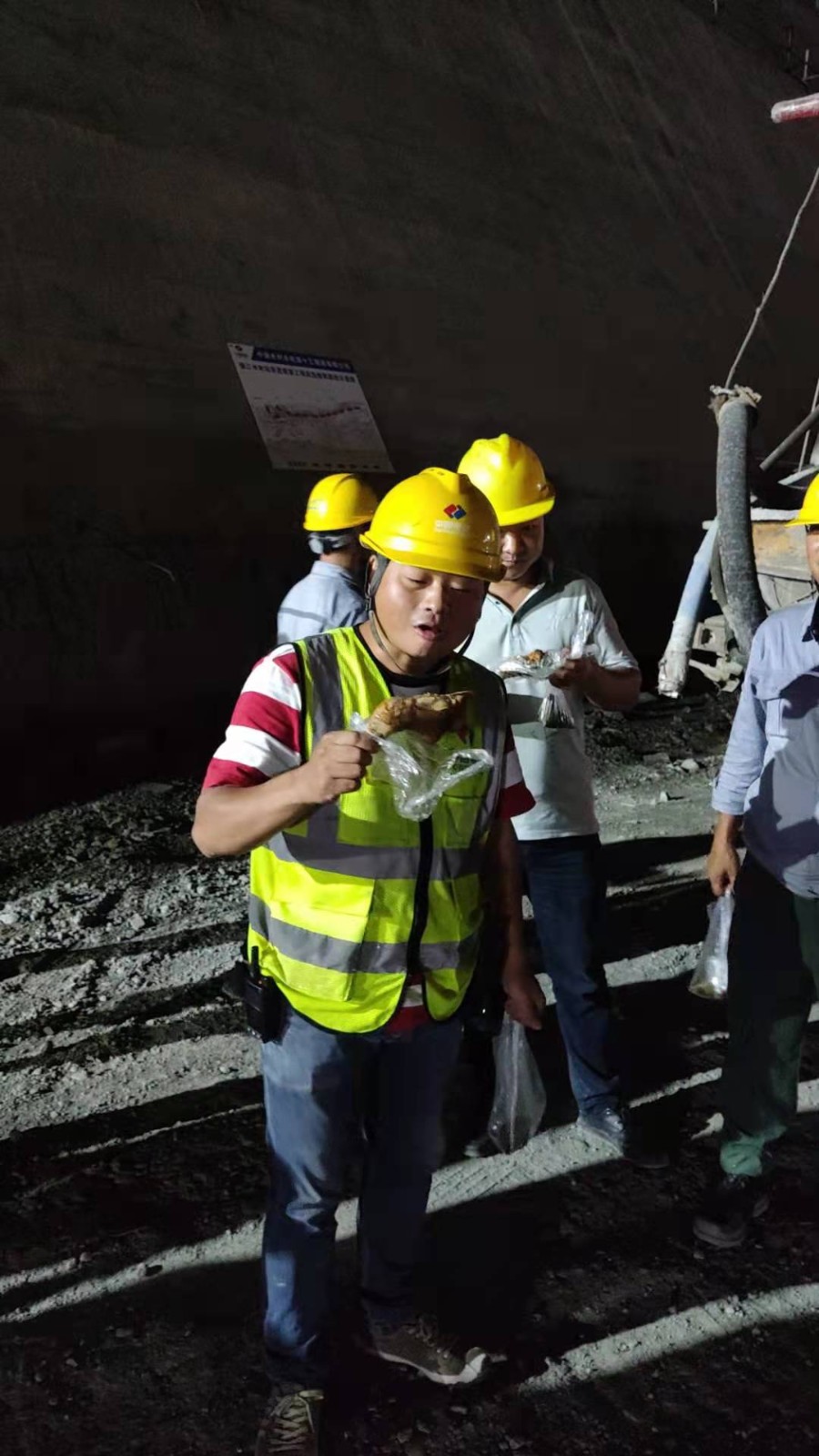 當日下午公司志愿者就開始忙活起來,鹵雞腿、包粽子、煮鹽蛋,采用流水線工作方式,把熱乎乎的雞腿、粽子、咸鴨蛋等進行分裝,方便工友在工地食用。晚上十點,慰問人員分成三組,分別前往康家溝渣場、銀江大橋、導流明渠、砂石骨料加工系統、混凝土生產系統等值班點位和夜間施工現場,將慰問品送到一線工友們的手中,對端午佳節期間依然奮戰在施工一線的人員致以親切問候,對大家咬緊牙關、不畏疲勞、迎難而上的工作態度表示充分肯定,對大家舍小家顧大家的奉獻精神致以崇高敬意,同時叮囑大家一定要注意身體健康和夜間施工安全。