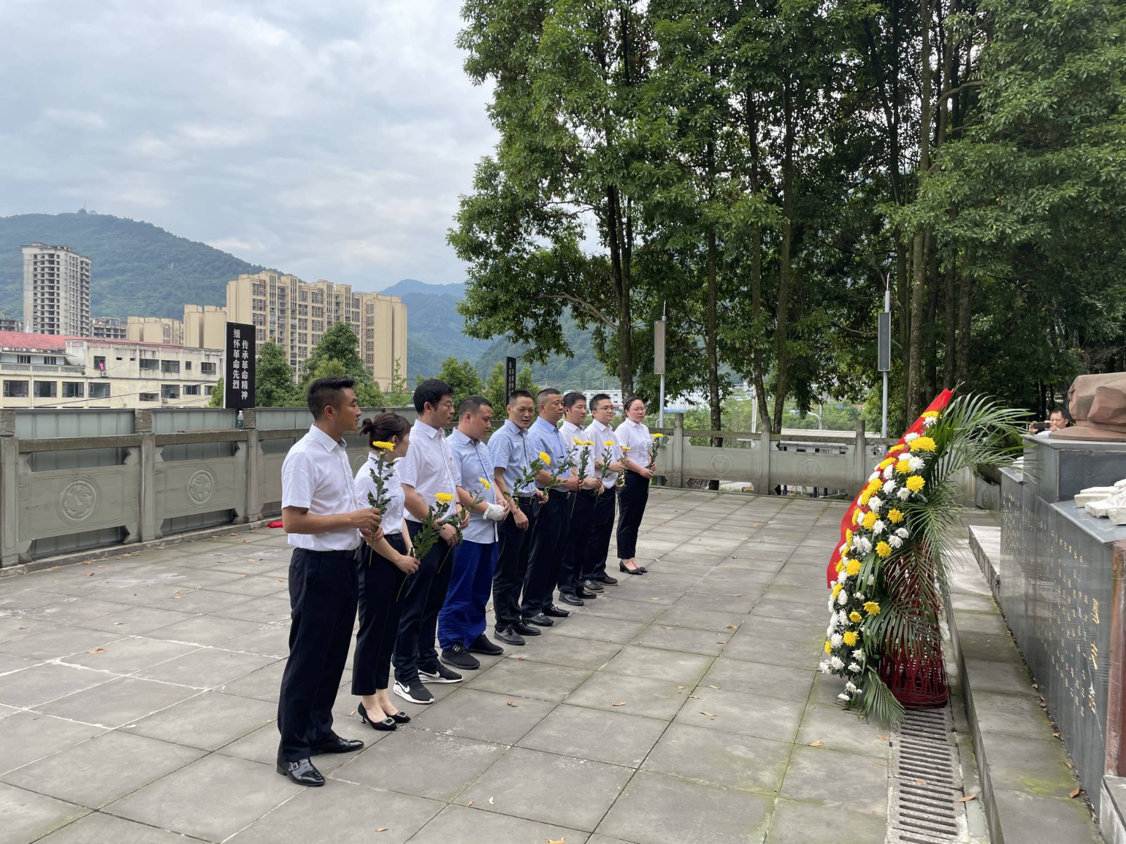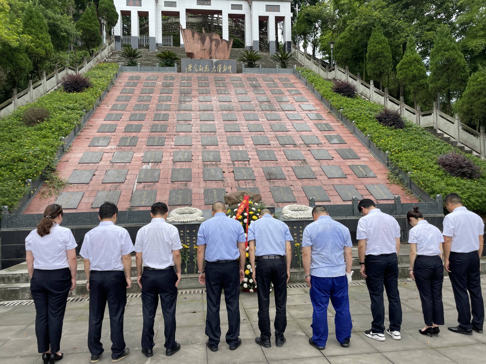 儀式后,全體黨員參觀了烈士陵園。烈士陵園內(nèi),松柏蒼翠挺拔,烈士紀(jì)念碑巍然聳立,氣氛莊嚴(yán)肅穆。天全縣烈士陵園,是為了紀(jì)念1935年10月7日至1936年2月15日中央紅軍在天全白土坎犧牲的紅軍烈士而修建的,共有316名先烈長(zhǎng)眠于此。在300名英烈群墓旁就是修建二郎山公路時(shí)犧牲的16民烈士的公墓,二郎山隧道曾是千里川藏公路上的第一道咽喉險(xiǎn)關(guān),素有“千里川藏線,天塹二郎山”之說,硬生生開鑿出一條道路,也付出了慘痛的代價(jià),平均每公里就要犧牲七名戰(zhàn)士。