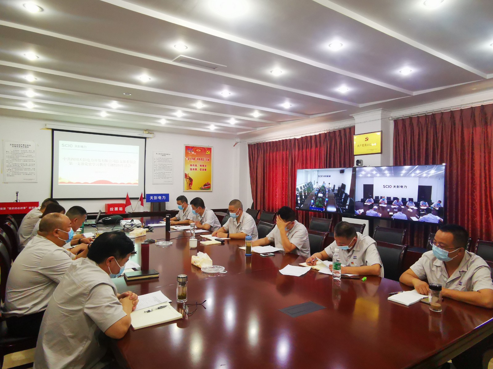 根據川投能源黨委和天彭電力黨總支黨史學習教育安排部署,近日天彭電力第一黨支部以“學黨史、悟思想、辦實事、開新局”為主題,組織支部全體黨員召開了黨史學習教育專題組織生活會,天彭電力黨總支書記、總經理陳忠以普通黨員身份參會。因疫情防控需要,川投能源黨委委員、副總經理、總法律顧問楊平通過視頻方式督導會議,并講授了專題黨課。