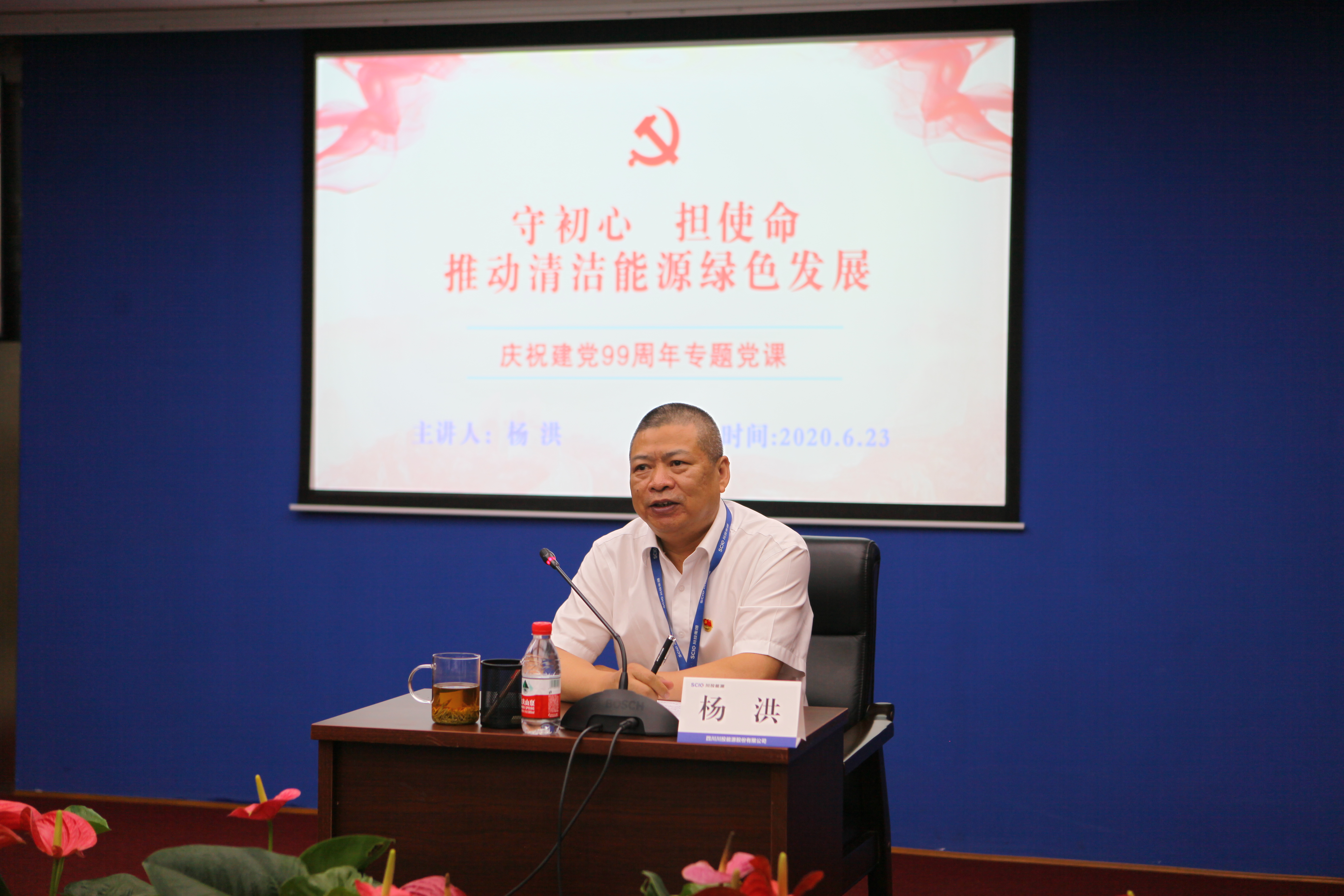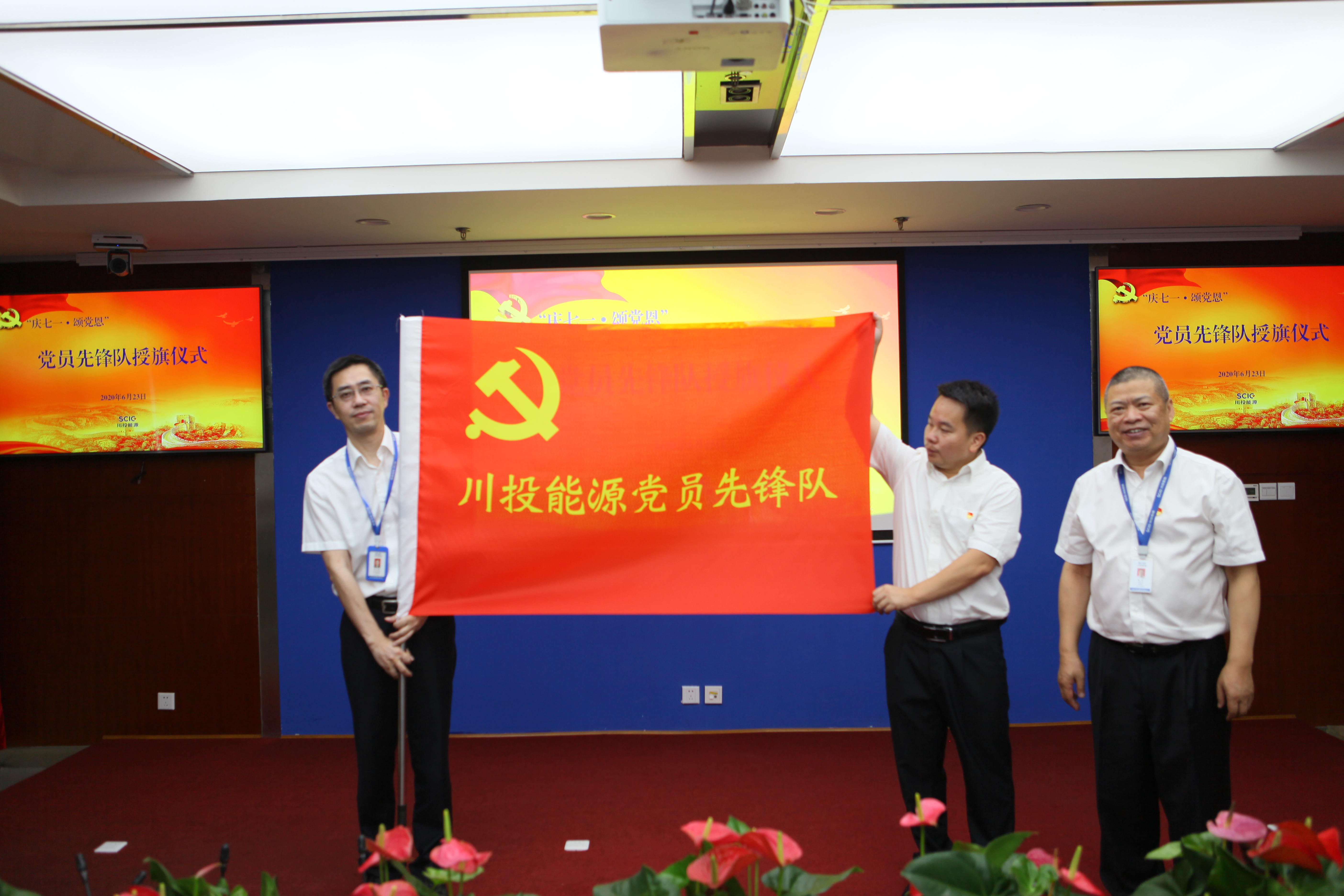 值此川投能源“紅色引擎藍籌先鋒”(簡稱“五個先鋒”)黨建品牌創建工作引向深入之際,6月23日,川投能源黨委采用現場和視頻會議相結合的方式,以黨員承諾踐諾、黨員先鋒隊授旗、發布公司黨建品牌標識以及公司黨委書記講黨課等內容為載體,組織全體黨員、入黨積極份子、新黨員代表隆重召開紀念建黨九十九周年大會,為中國共產黨第99個生日獻上賀禮。公司黨委副書記、工會主席楊超龍主持會議。