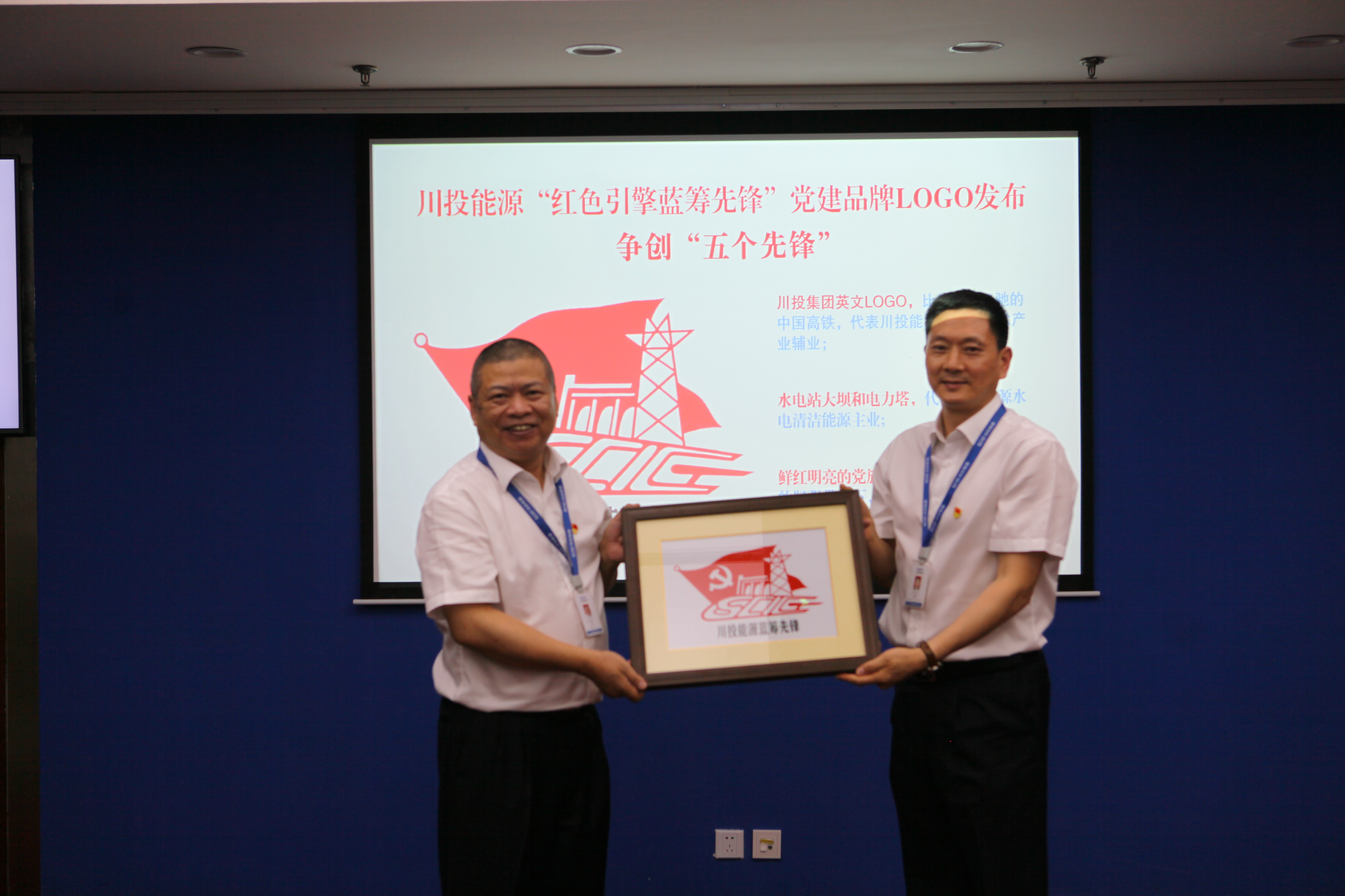 在公司黨建品牌標識發布會上,黨委書記楊洪與紀委書記冉蘭平共同為黨建品牌標識揭牌。在黨建品牌的帶動引領下,公司的黨建品牌建設已經形成了“一條主線串,各自放異彩”的良好局面。由川投能源所屬天彭電力黨員莊叢燦設計創作的黨建品牌標識,要素兼顧、設計新穎、要義突出,用川投集團英文LOGO,比作急速飛馳的中國高鐵,代表川投能源的高新技術產業輔業;水電站大壩和電力塔,代表川投能源水電清潔能源主業;鮮紅明亮的黨旗,喻作風帆,寓意在黨的堅強帶領下,川投能源乘風破浪改革前行的美好景象。